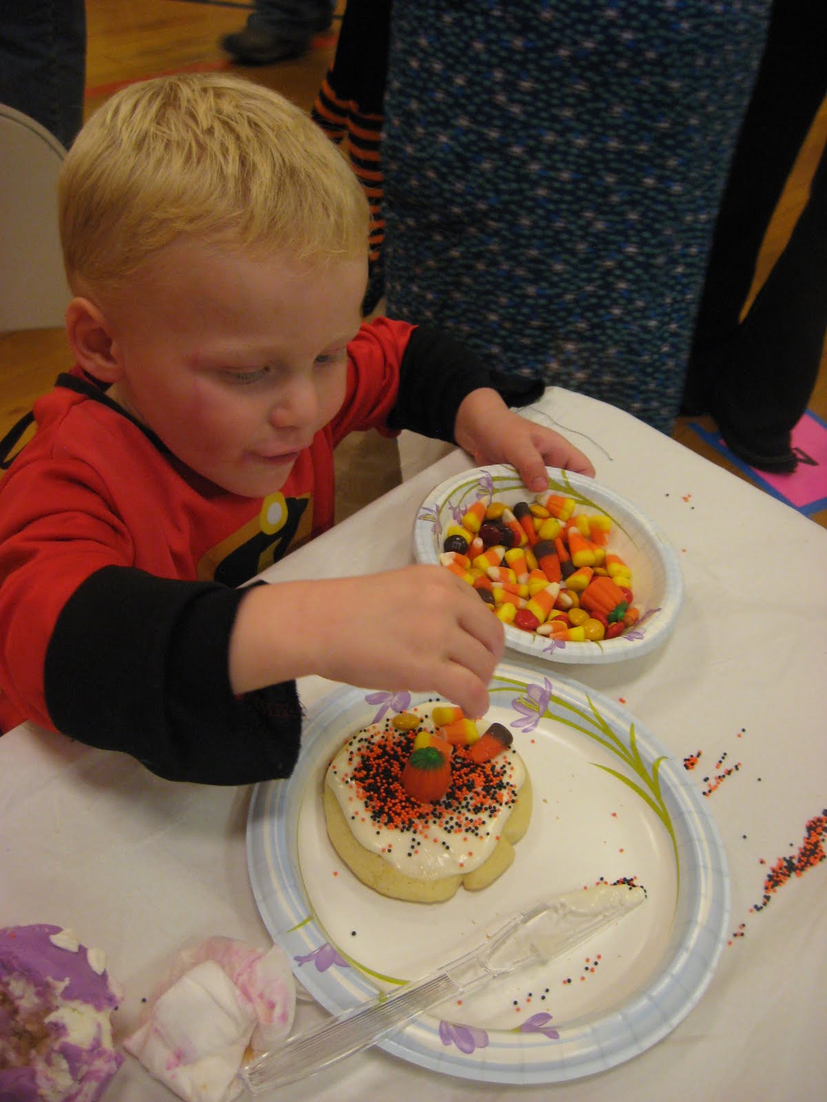 James enjoyed decorating his cookie, while stuffing candy into his mouth too.